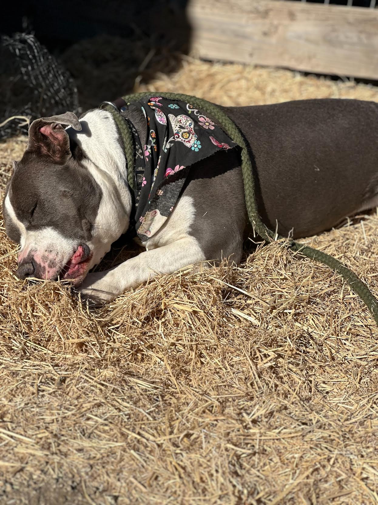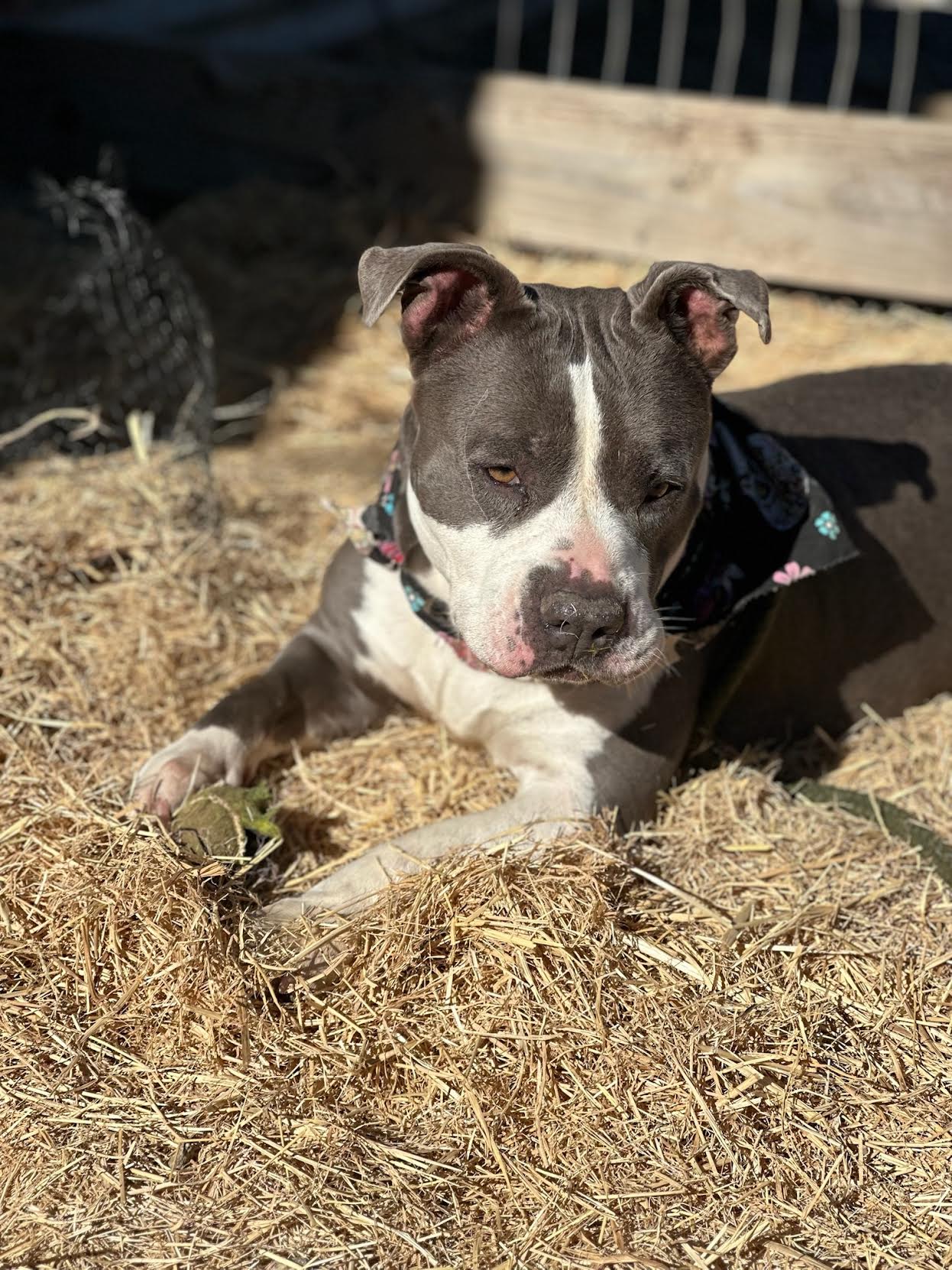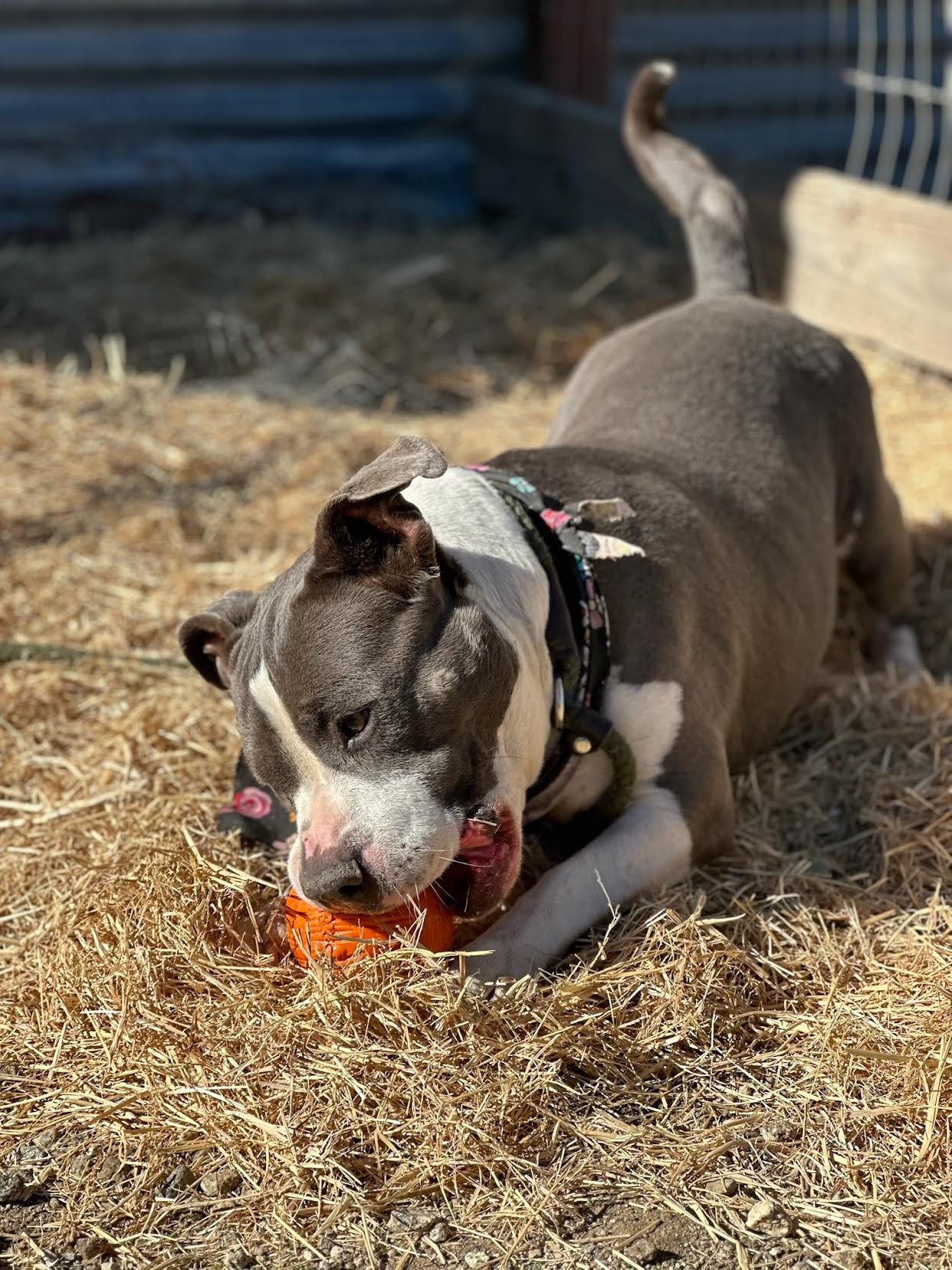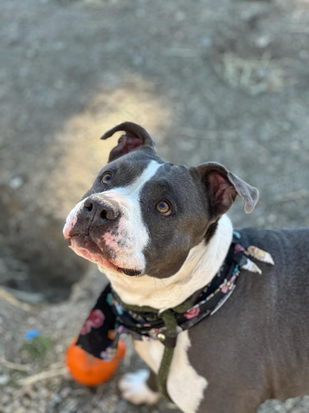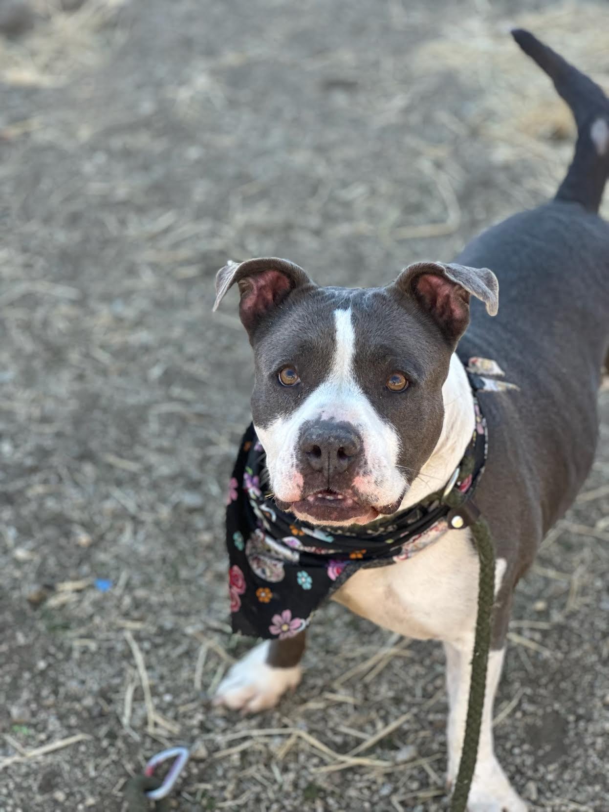 Amani came to us when her family lost their home. They were out of options and wanted to ensure their beloved furry family member was safe and provided for. And they really did love Amani. She lived inside with their family including children. They ensured her medical needs were met. They gave her a solid training foundation including some leash manners and house training skills and they ensured this sweet girl was socialized. Everything they did has made Amani the amazing dog she is today. A lover of everyone!