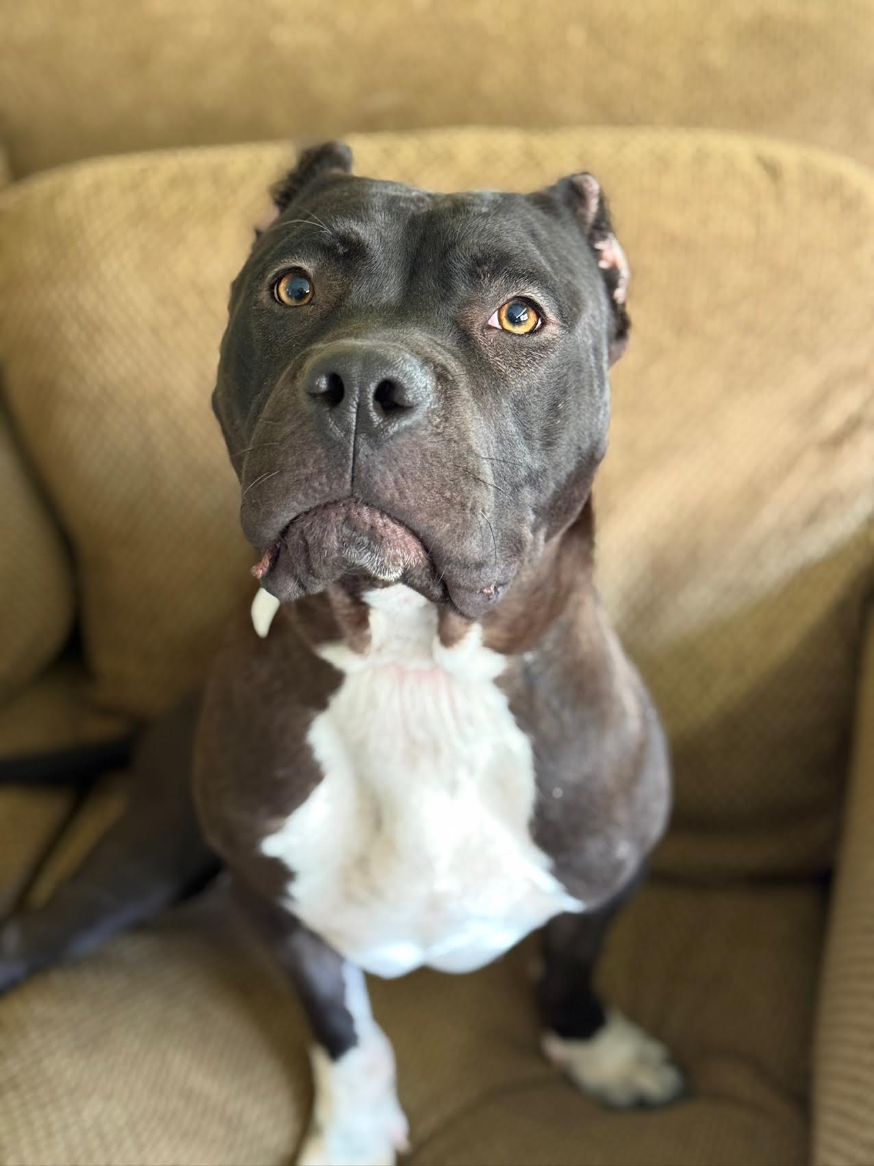 Shelter vet staff completed Eileen’s amputation so she can be more functional in her movements and then reached out for rescue help. A three legged black pittie stood almost no chance of making it out of the shelter through adoption. Our yes gave Eileen her freedom and she’s never looked back! She’s brought all her goodness and love to our rescue ranch and has brightened the lives of every human and dog she’s met. Such an amazing girl so come on let’s get Eileen the forever home she’s been waiting for!
