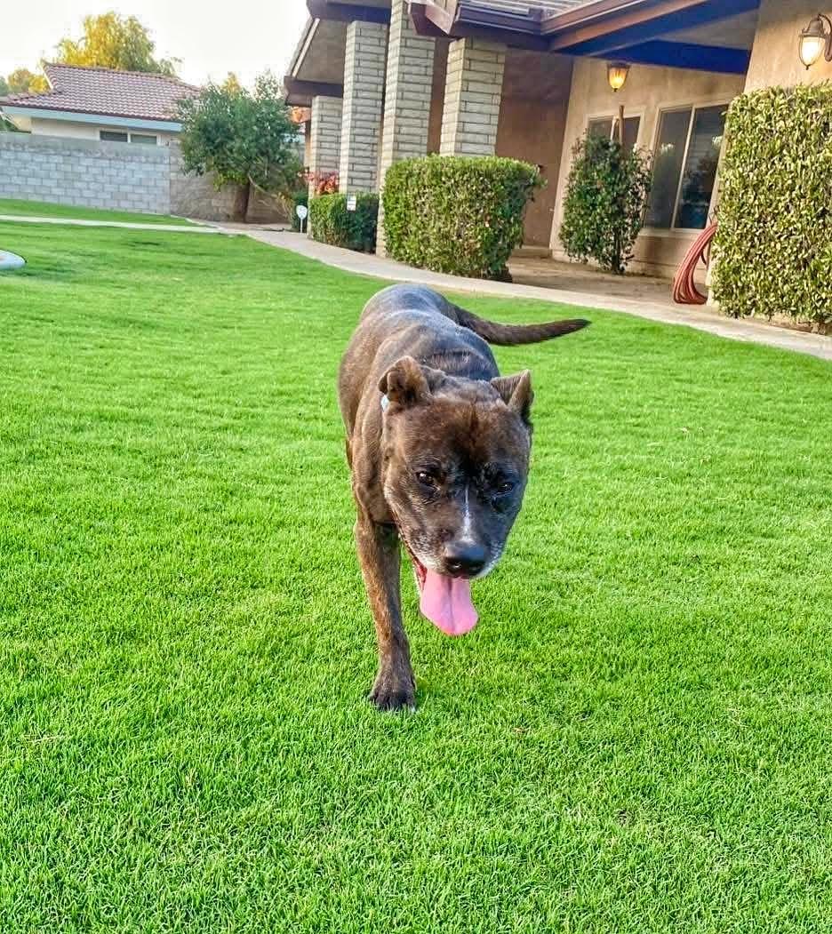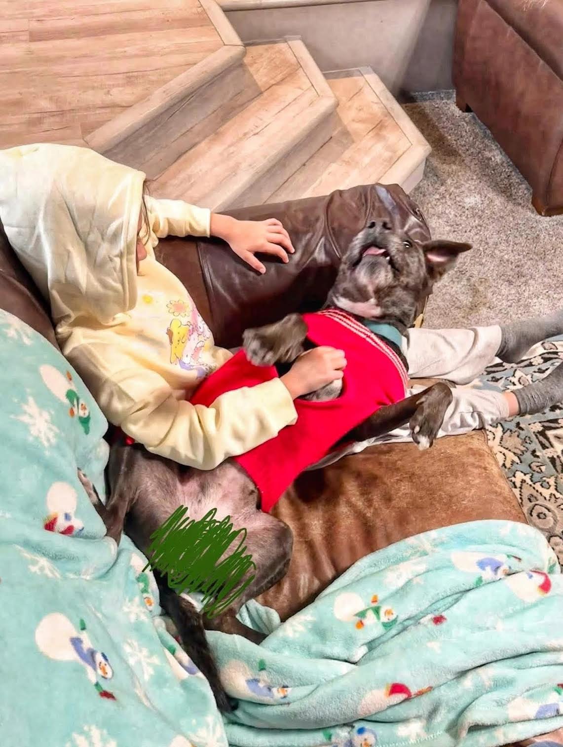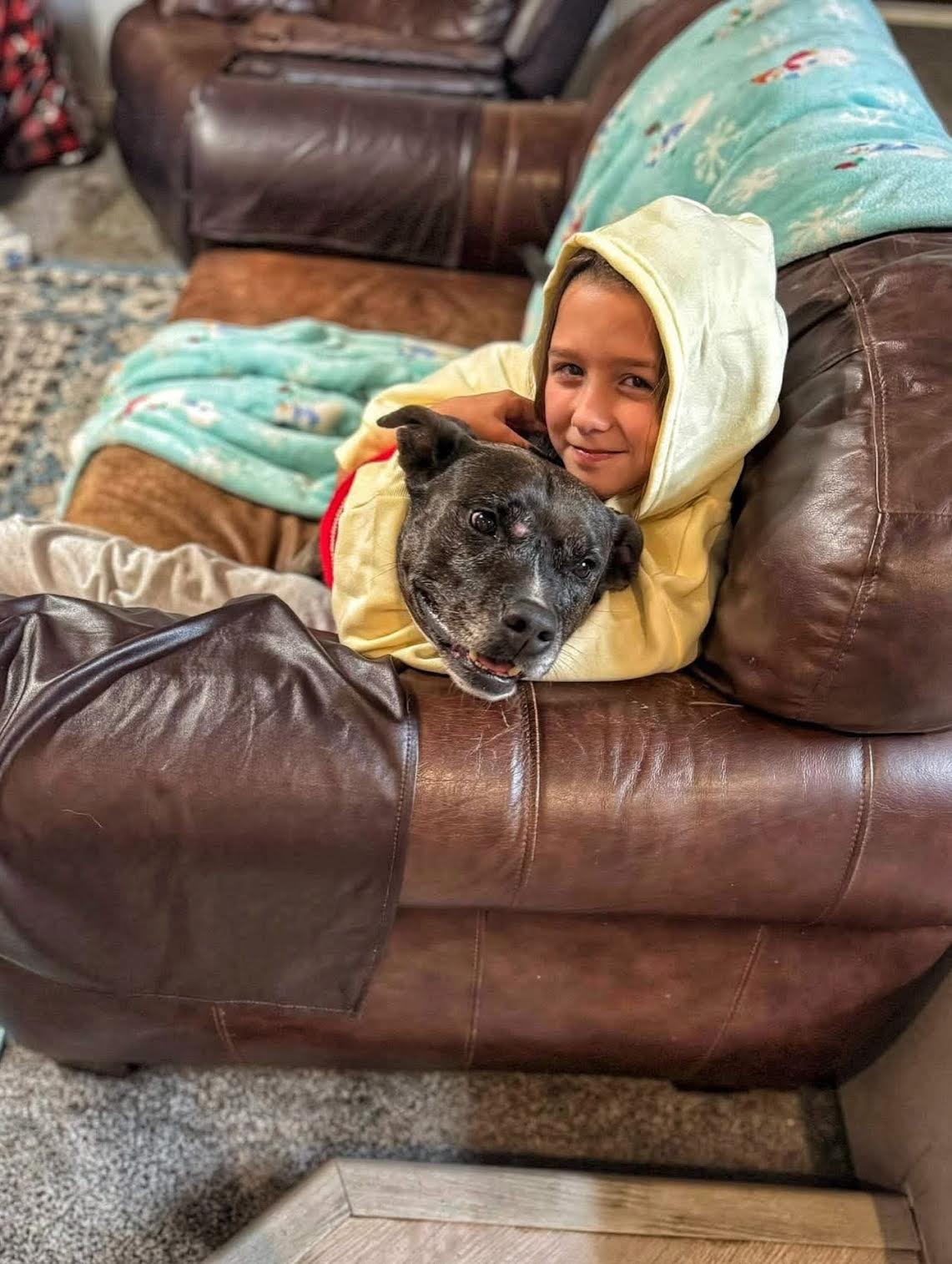 Age is just a number and Harriet’s here to wiggle her cute little brindle self right in to your lap and heart! Yes she’s absolutely a lap buddy but the couch or bed will do too. She’s not picky. Just being with her humans is the thing that makes Harriet the happiest girl alive. And that’s what she’s looking for humans she can shower with love. She’s a lover of all the things…..every person she’s ever met, other dogs she’s just a good, sweet girl looking for the perfect retirement home. Shes chill. Basically a couch potato sort of dog who loves belly rubs and won’t destroy your stuff. We just know we can find the perfect home for a dog like Harriet. Who wouldn’t love a happy, smiley senior pittie. We know we do!