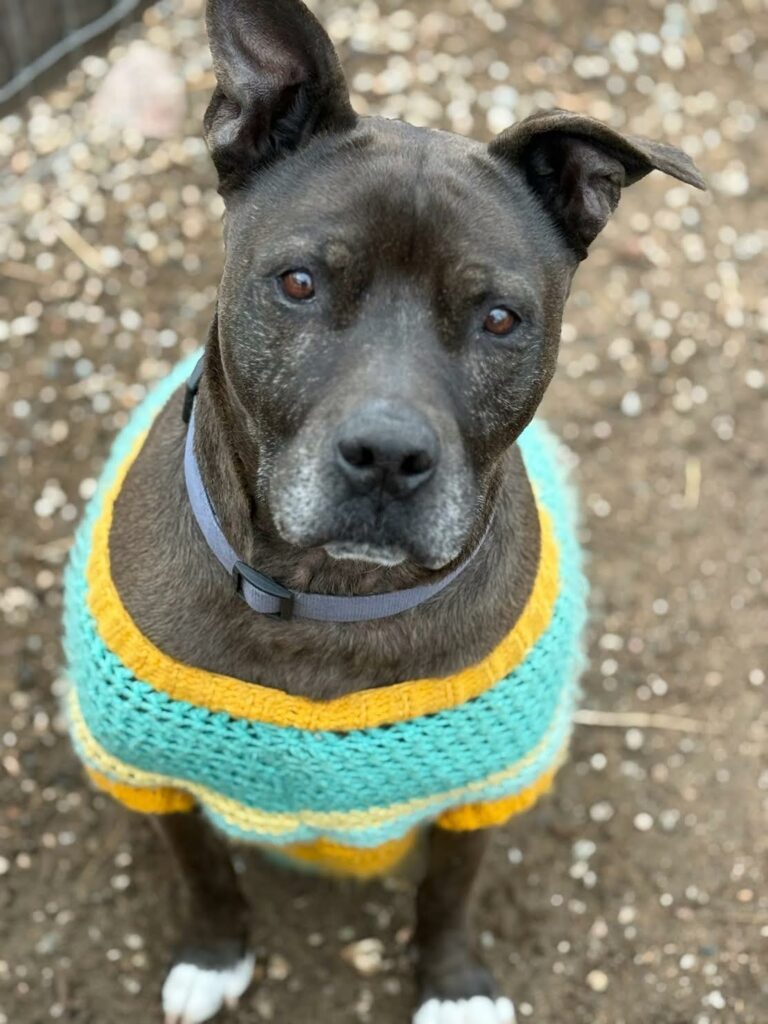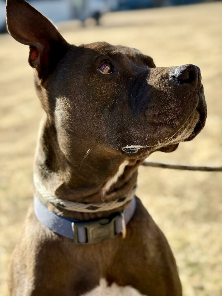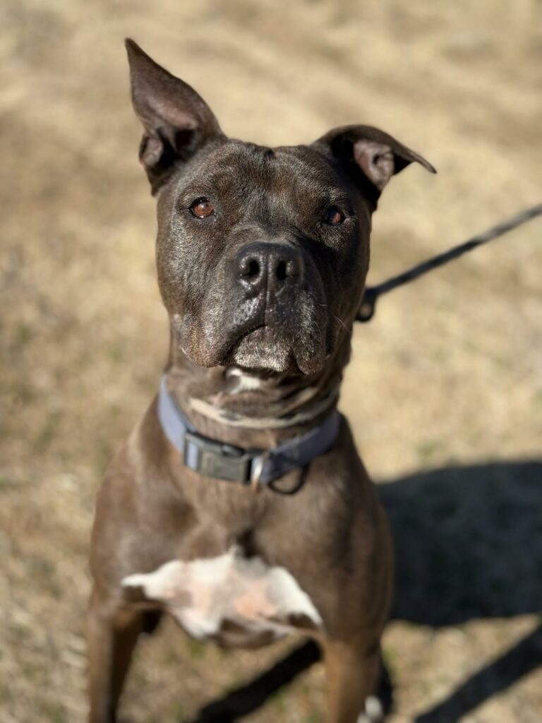 Jack came to us after the rescue he was with lost their facility. He needed a safe place to land and we could offer him that at our rescue ranch. He’s a lover of all people and has the best pittie smile ever!!! It seriously lights up his entire face. He’s fun and engaging and also a bit of a water dog so if you like water activities this big boy will be happy to join in.