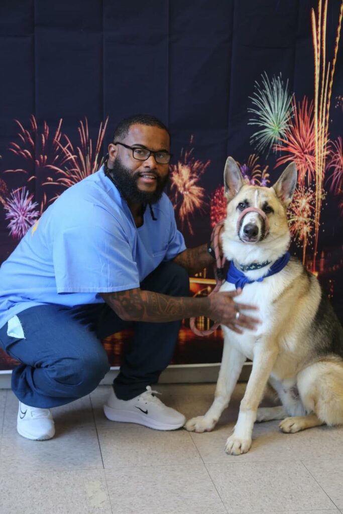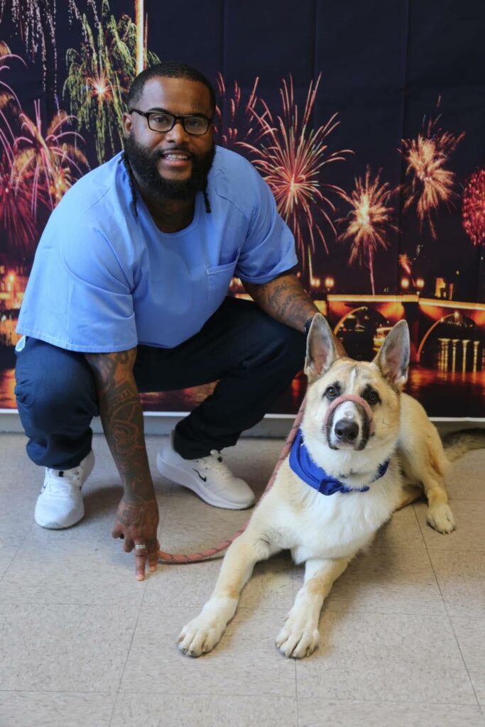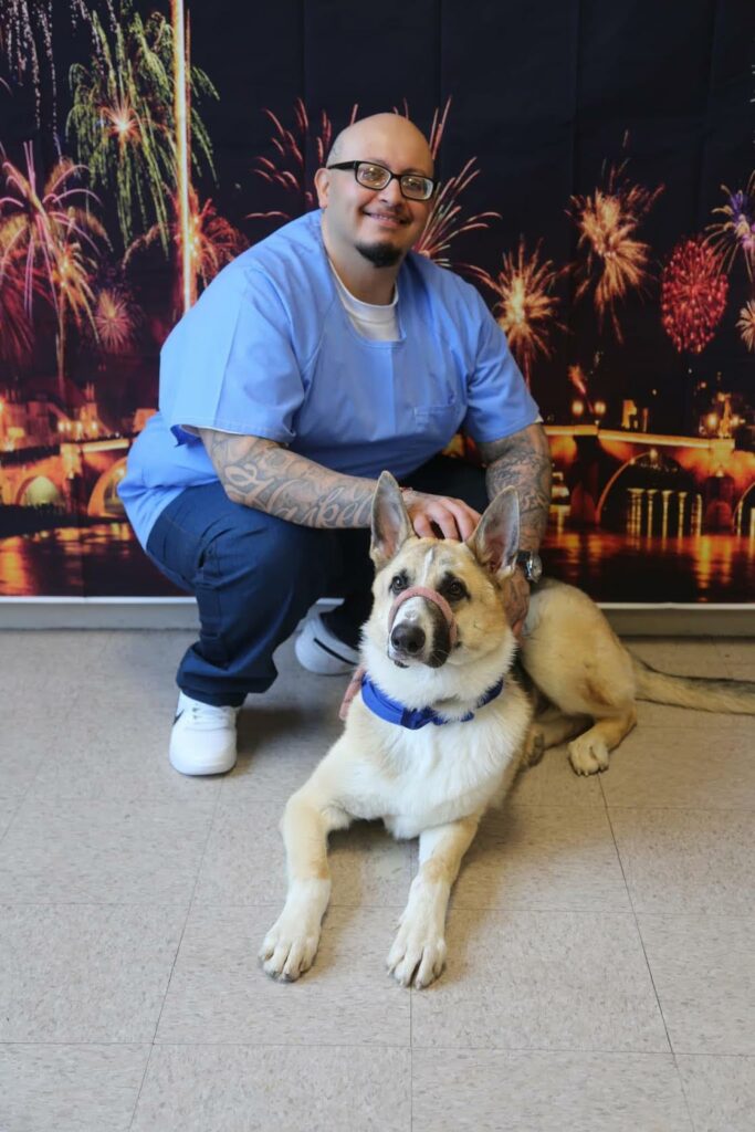 Have you seen a Panda Shepherd? You should google it cause that’s exactly the breed Jimmy resembles. There are so many purebred dogs in our shelter systems it wouldn’t surprise us. Whatever his breed combination this boy is a lover of life. He a happy, young energetic pup who’s very dog and human social. There isn’t a mean bone in his body and he’s happiest using all those positive social skills in our doggie play groups. All those positive skills also make Jimmy an excellent candidate for our Pawsitive Change program! Jimmy has headed into North Kern State Prison and will spend the next 3 months gaining basic obedience skills to go with his wonderful temperament. Once he’s out this big fun boy is hoping to find an equally fun and active adoptive home. We’d love to see him paired up with a playful canine buddy or two and a family willing to continue his training and provide for his activity needs.