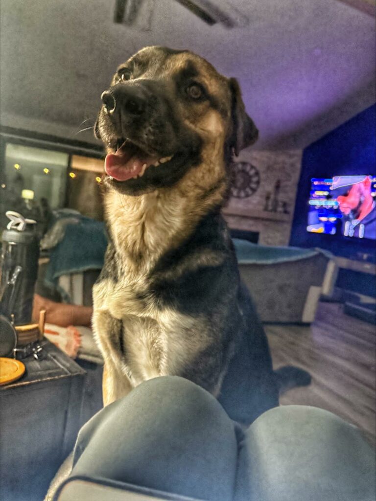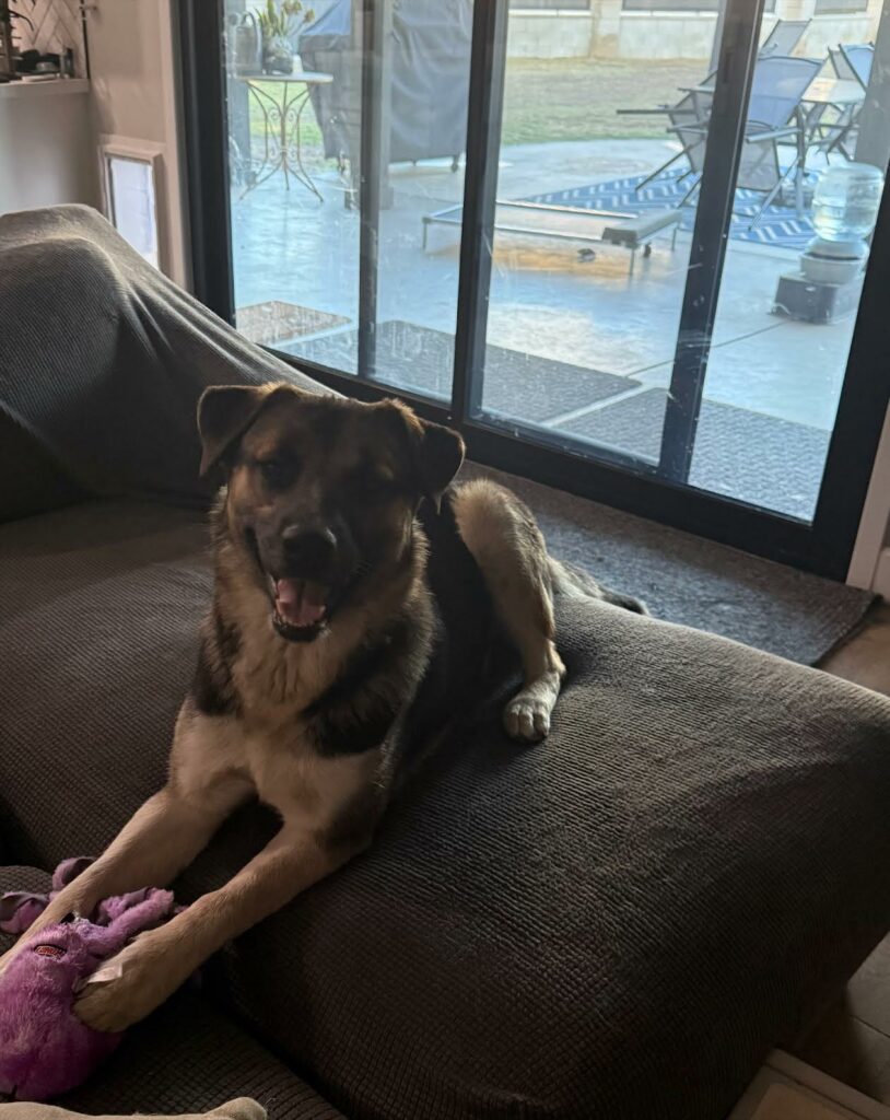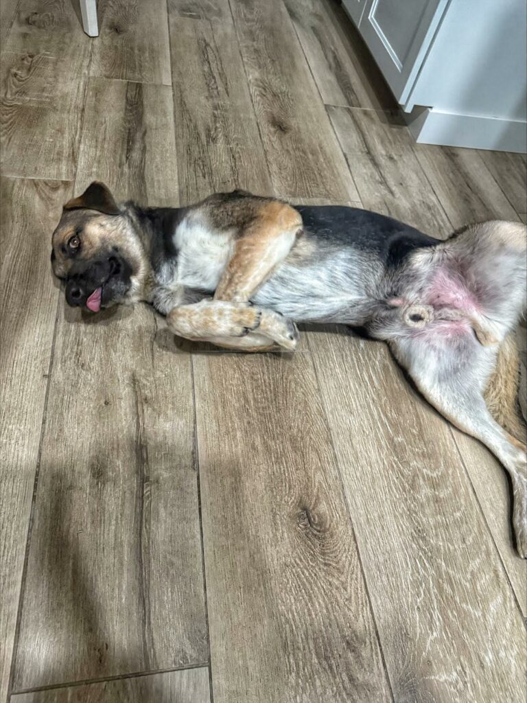 We don’t know much about Rocky’s past but what we do know is likely the reason he’s so insecure around strangers. Rocky wasn’t a loved member of a family he was a dog discarded alone in the rural orchards and left for dead. Still a puppy at that time we can’t imagine how scary and hopeless he must have felt. And if he was discarded like trash how was he treated when he did have a home? We can only speculate and work towards giving this sweet, goofy boy every positive experience he missed in his puppy years.