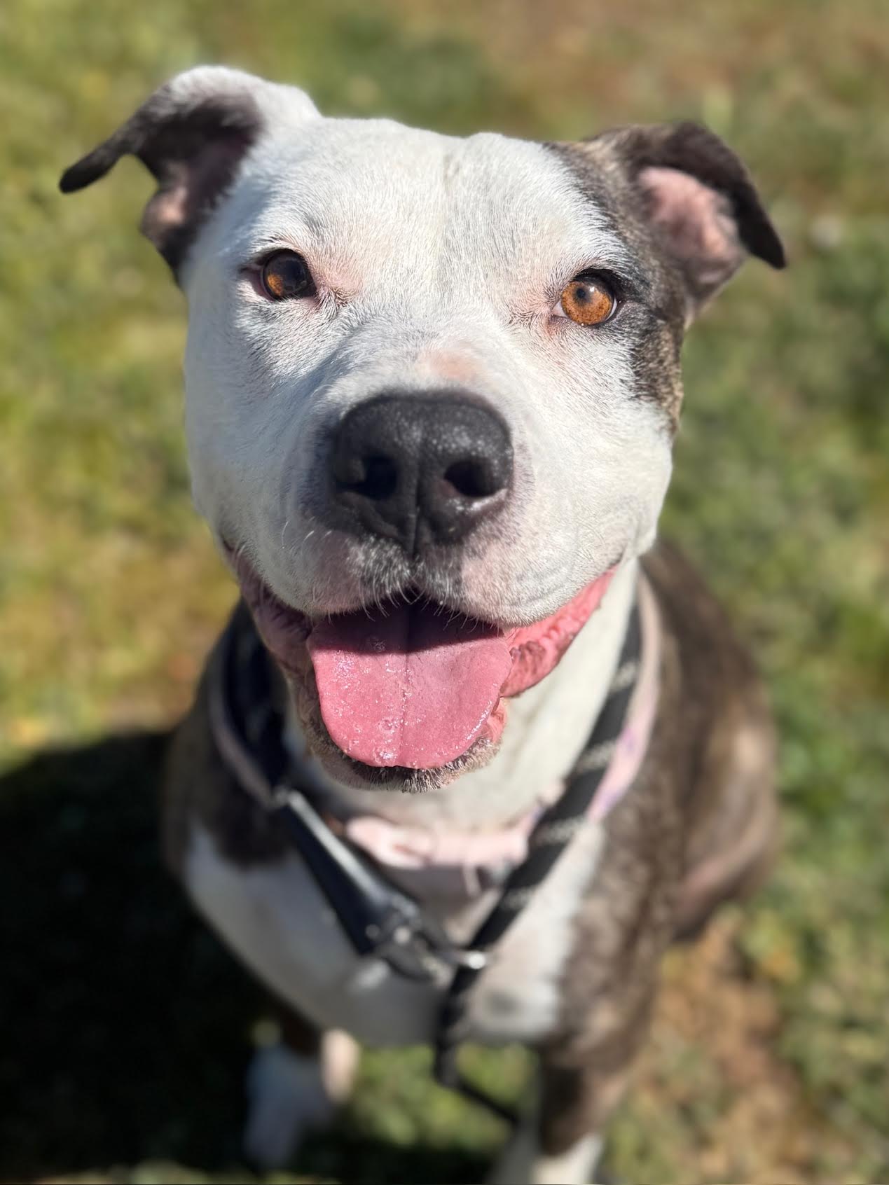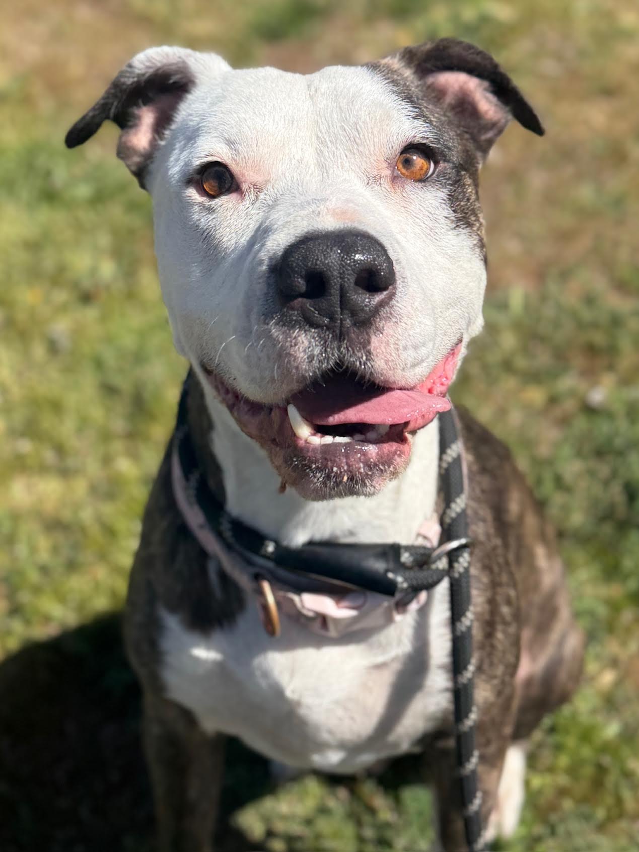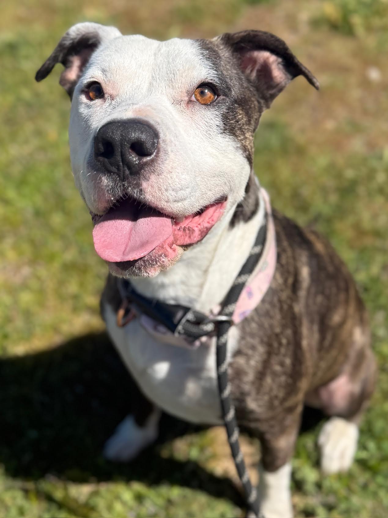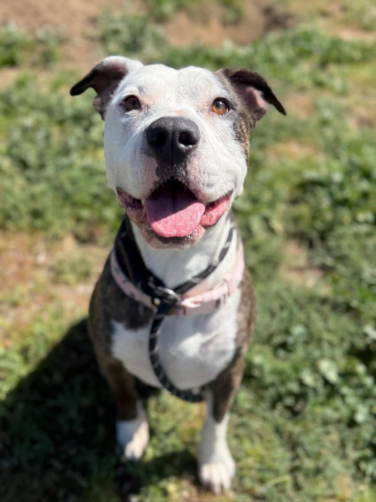 Scarlet is one resilient girl! She’s one of the sweetest most mellow dogs we’ve ever met. Always affectionate she adores all humans and has quickly become a staff favorite. She gives lots of pittie kisses and is always down to give and receive a little love. She’s good with respectful dogs and needs the appropriate introductions to ensure compatibility. With the dogs she enjoys she’s goofy, playful and so incredible sweet. Scarlet is such a good girl we can’t wait for her to find her perfect home. Interested? Apply today or come visit our rescue ranch and you’ll see in person why we all love this beautiful girl so much!